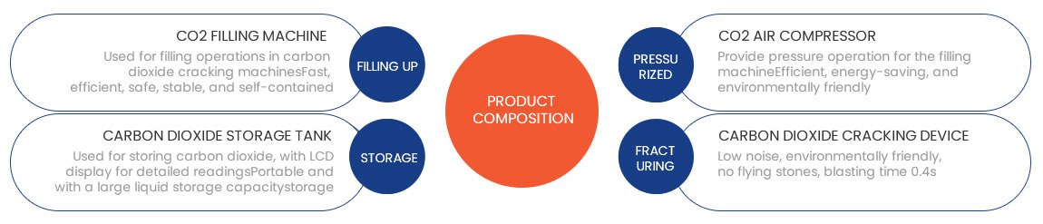 Neither vibration nor impact can stimulate the heating device, so the filling, transportation and storage have relatively high safety. Moreover, the injection of liquid carbon dioxide only takes 1 to 3 minutes, and the cracking process is completed in just 4 milliseconds. During the implementation, there is no mute cannon and no cannon inspection is required.